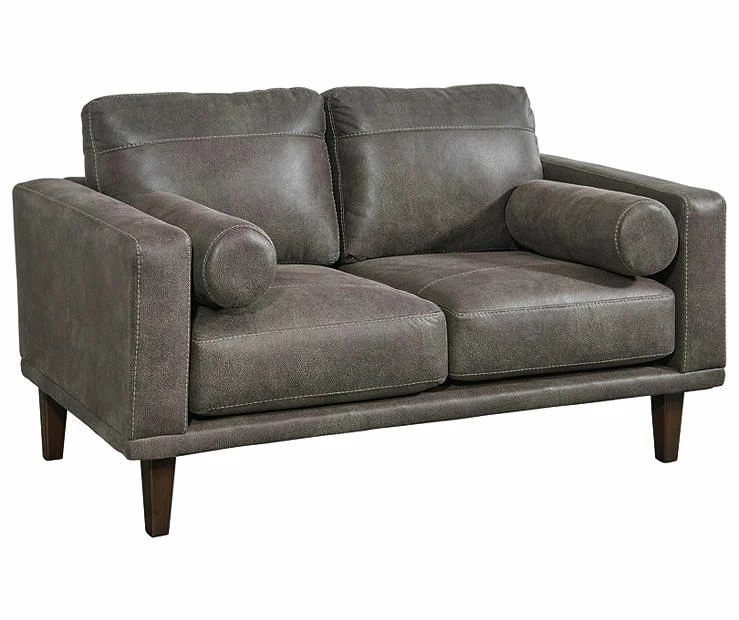 For a fresh spot in your space, turn to the Arroyo designer loveseat. This invigorating piece breathes warmth into your home with its striking gray faux leather upholstery and tapered legs. Wind down at the end of a long day when you sink into this canyon of comfort.
