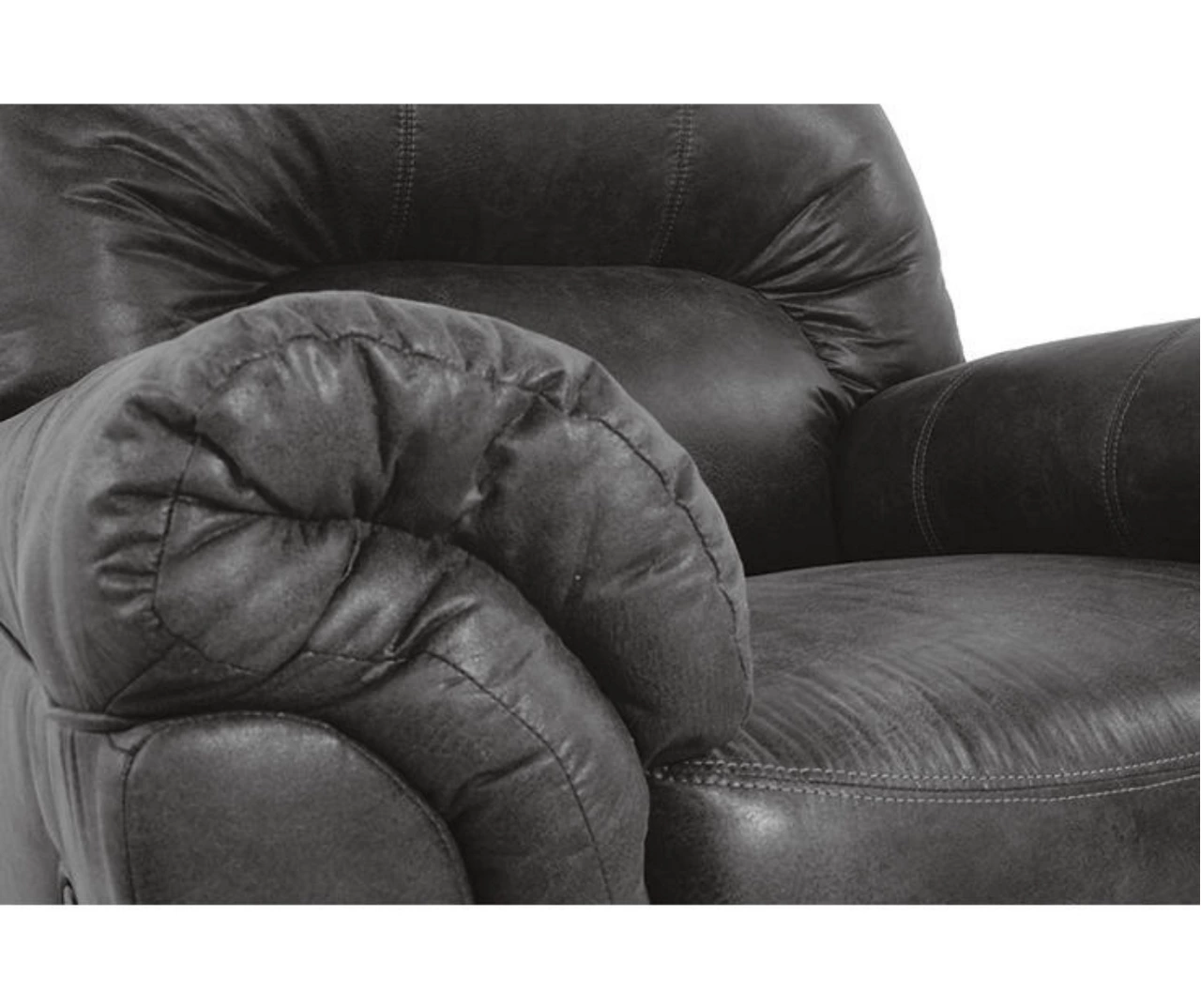 - Faux leather upholstery in a multi-tonal slate gray color