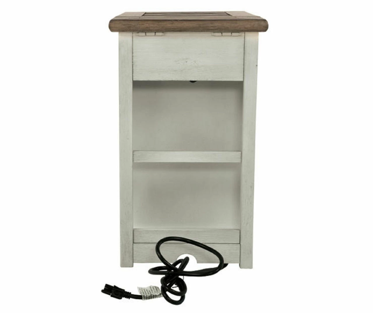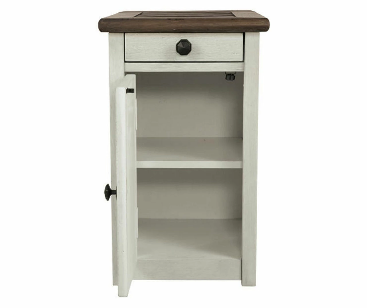 - Lift-top back reveals 2 electrical outlets and 2 USB charging ports