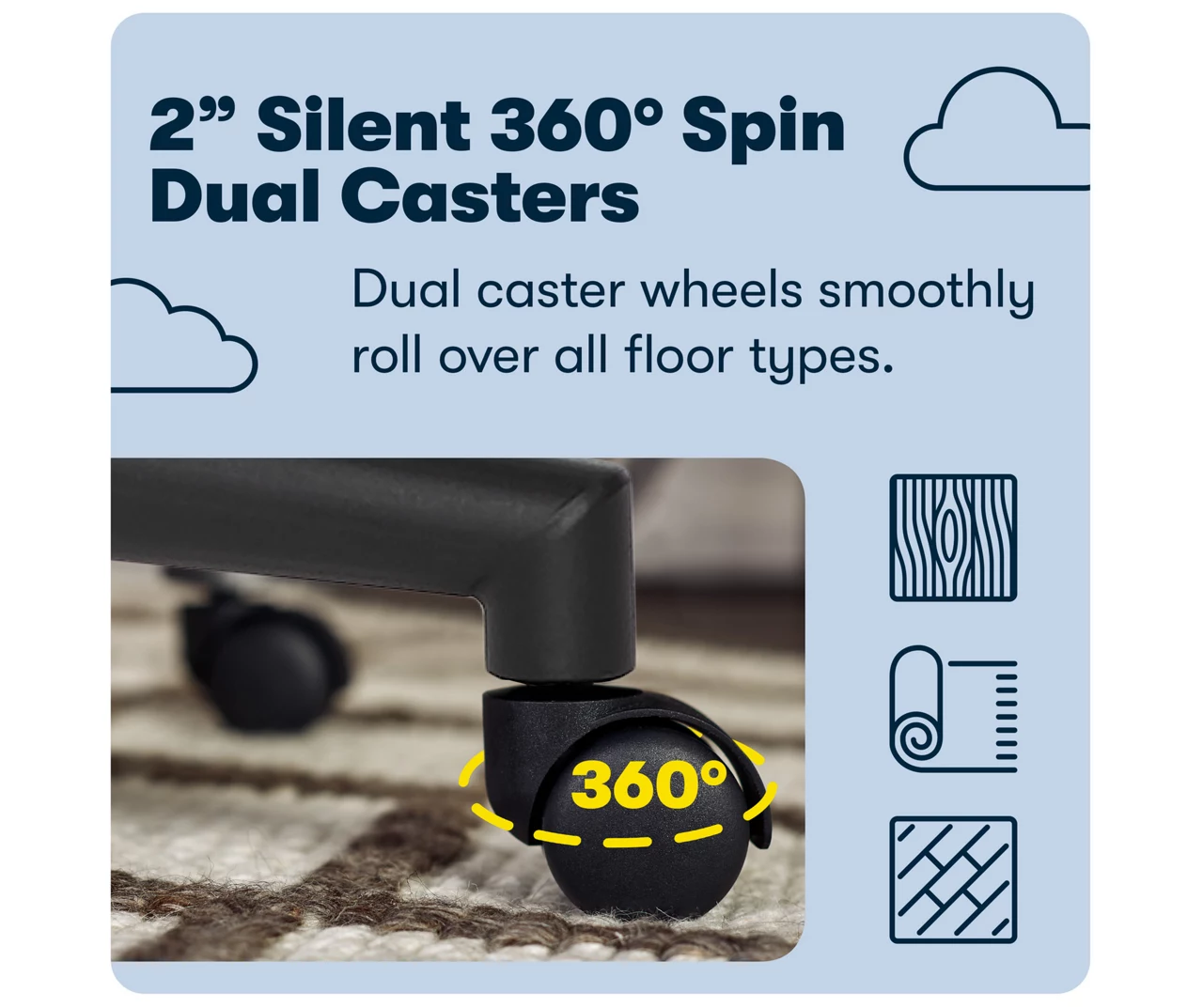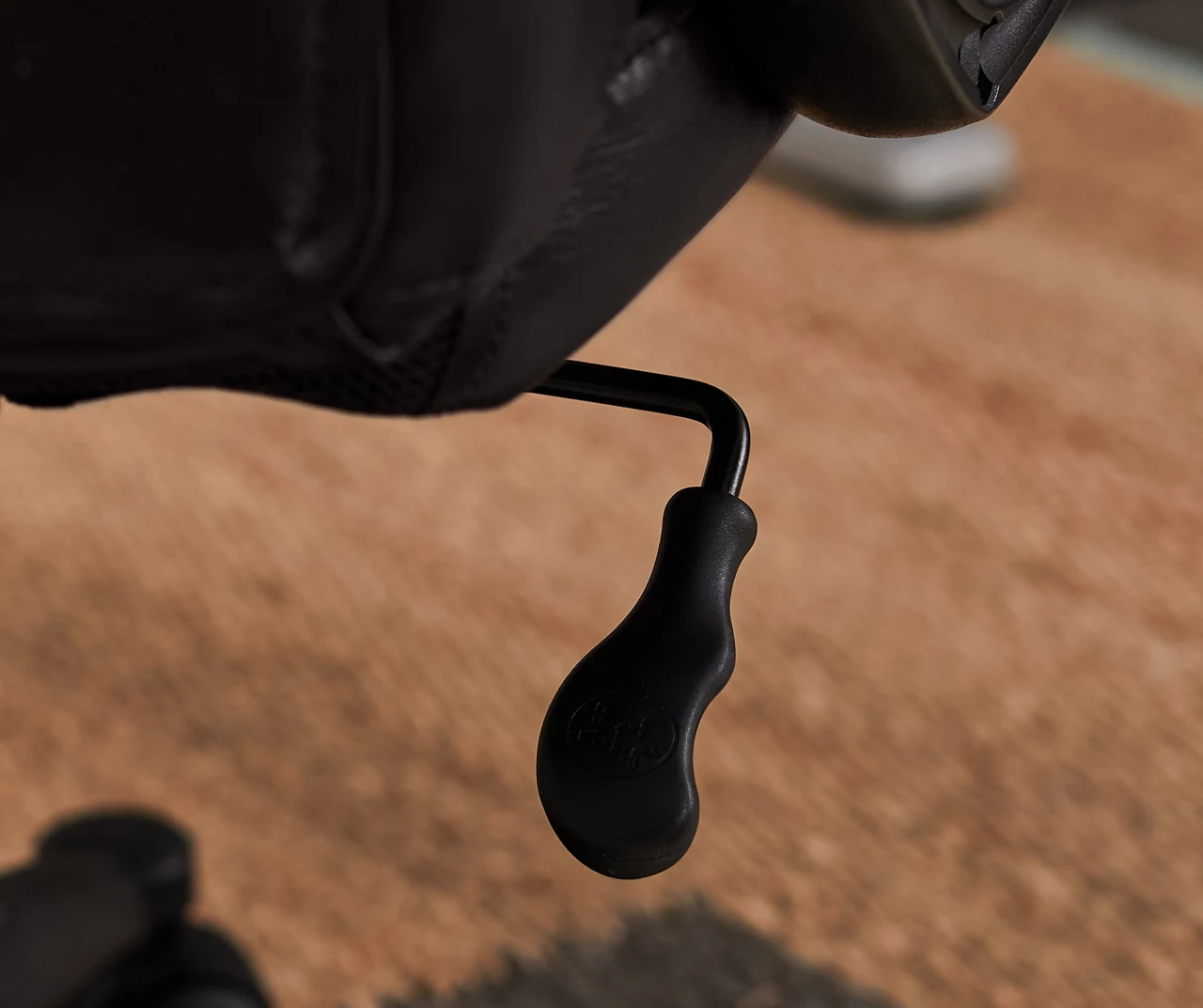 Get down to business in style with the bonded leather Hannah I office chair by Serta. With a cushioned, contemporary profile, its designed with comfort in mind with adjustable height and recline tensions. Its waterfall seat edge is curved to lessen back pressure and increase circulation. The design makes it suitable for many types of office decor, from modern to traditional. Its classic black cushions are accented by a black frame to improve any office’s decor aesthetic. The padded arms provide support and comfort, highlighting its ergonomic design. The sturdy 5-point base features castor wheels that are ideal for hard-surface floors.