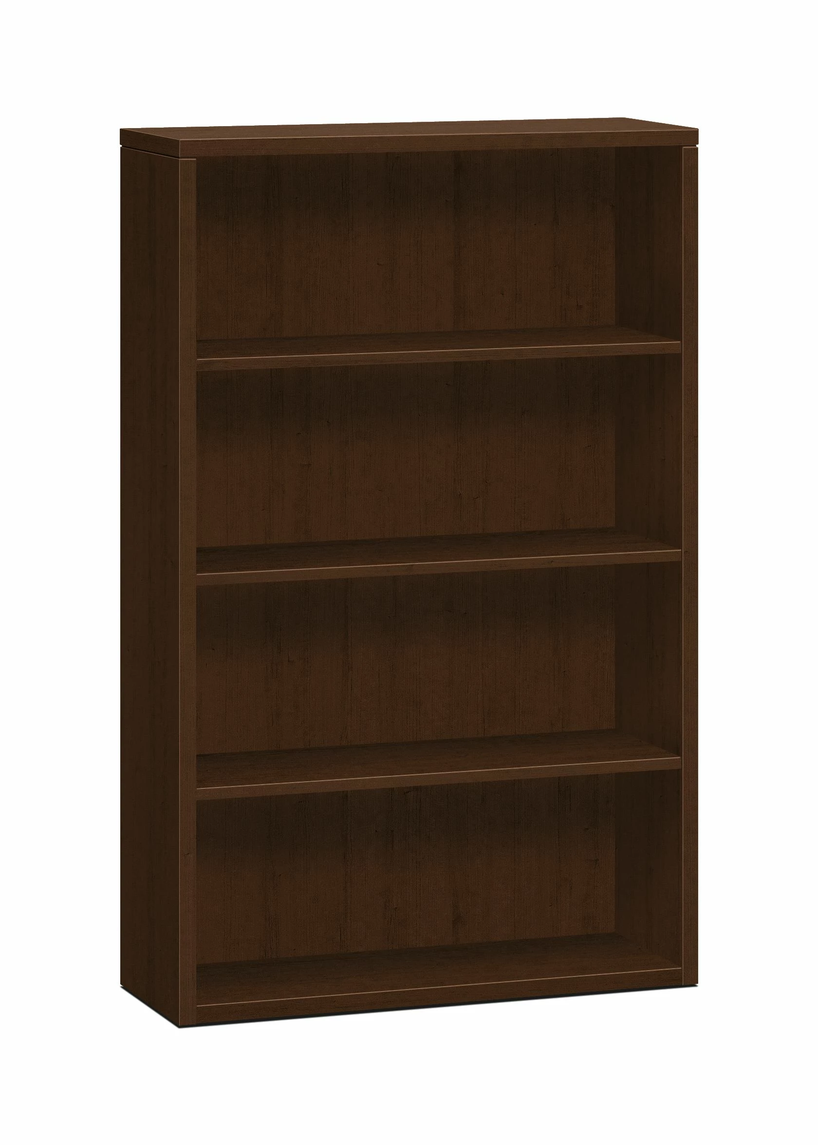 Build a hard-working workstation with 10500 Series laminate from HON, our bestselling desk collection. This four-shelf bookcase is factory-assembled and amazingly strong, ready to handle your books and reference materials. Laminate finish color is Mocha.