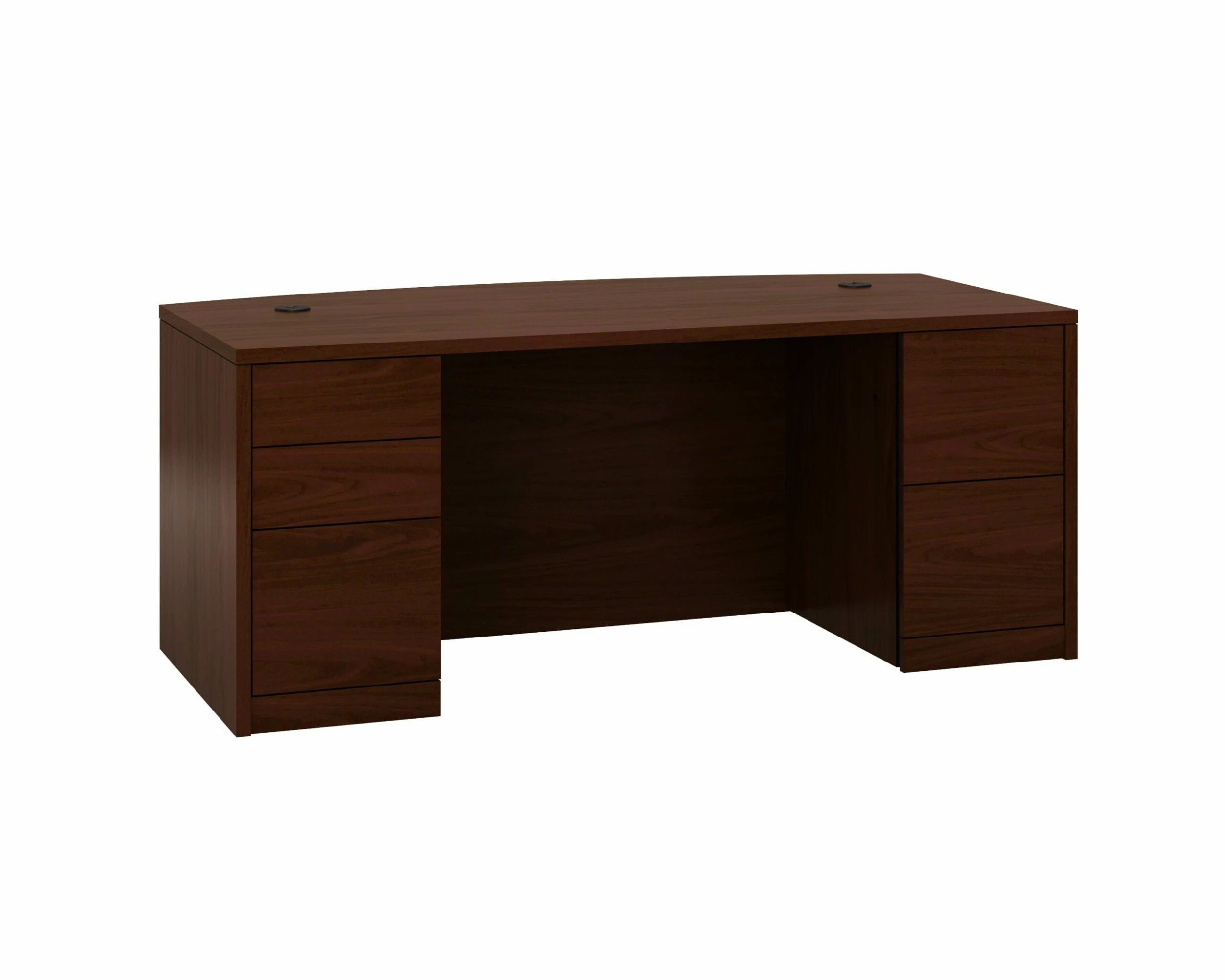 Build a hard-working workstation with 10500 Series laminate from HON, our bestselling desk collection. This 72″W double pedestal bow-top desk can be used alone, or paired with a double pedestal credenza and stack-on hutch to create an executive workstation. Laminate color is Mahogany.