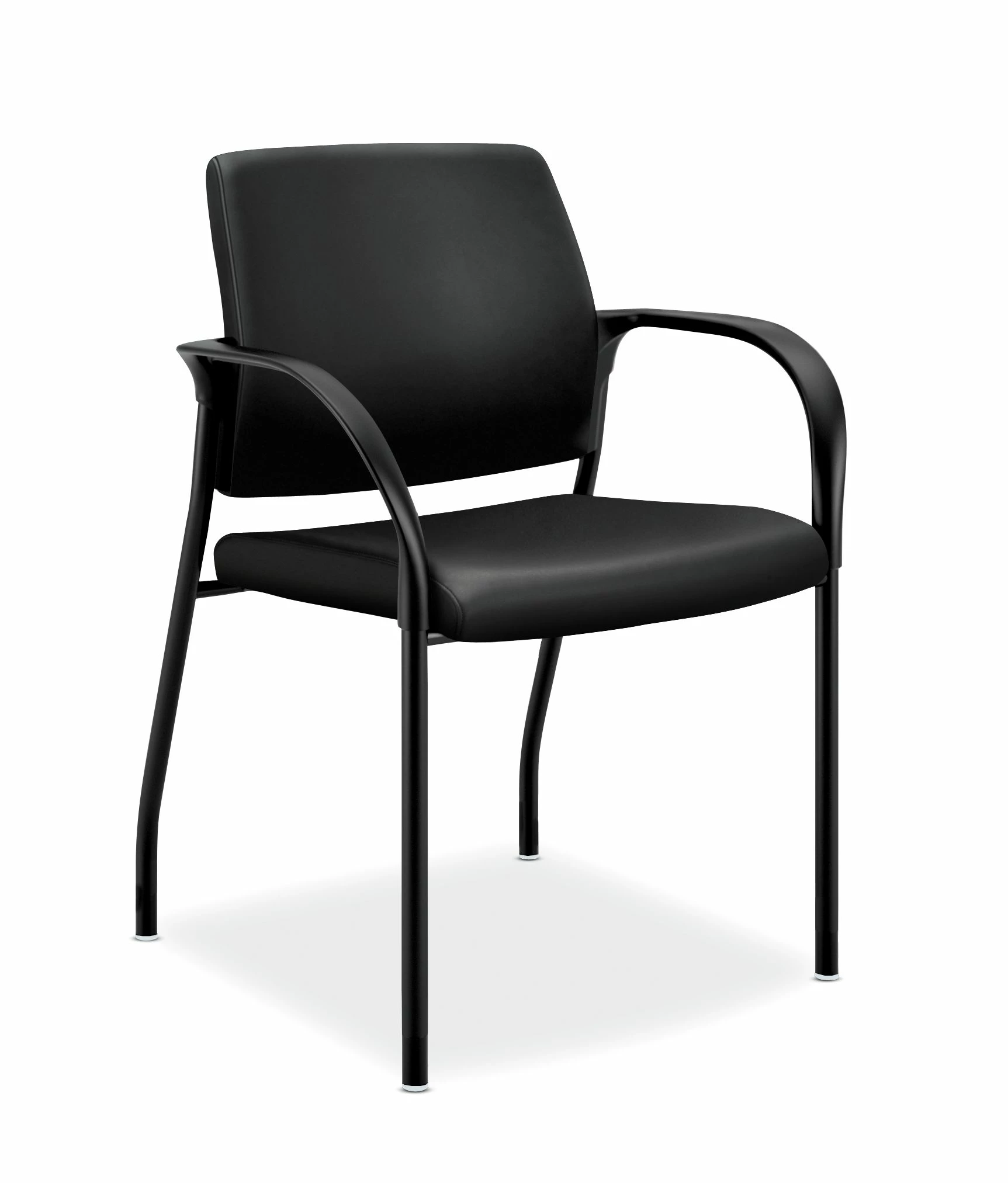 Ignition seating from HON fits your body, your work and your space. This four-leg multi-purpose chair works well in private offices, and also stacks four high for quick rearrangement in lobbies, cafeterias and common areas. Armless models can be ganged. Warranted for users up to 300 lbs. Seat and back color is Black Leather and frame color is Black.