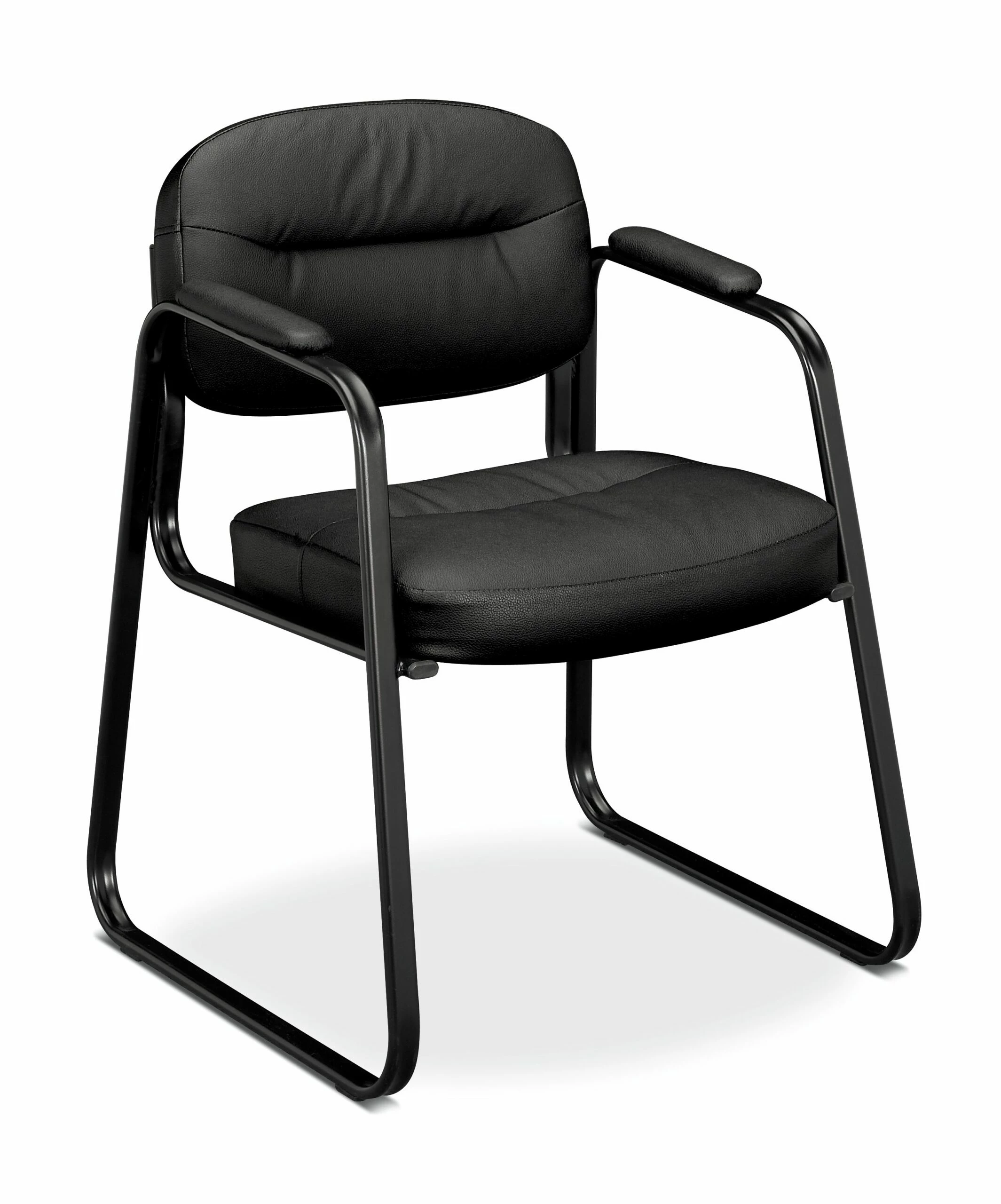 This HON guest chair has tailored stitching for a professional look. The Bonded leather seat, back and arms give this chair an upscale feel at a compelling price. Bonded leather upholstery color is Black.