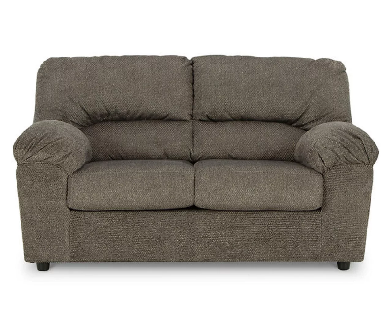 Looking for a peaceful retreat? This loveseat is at your service. Its super plush padding and substantial pillowtop armrests make for an easy getaway. The loveseat’s subtle warm taupe hue and pleasantly soft texture are so appealing that you won’t want to leave.