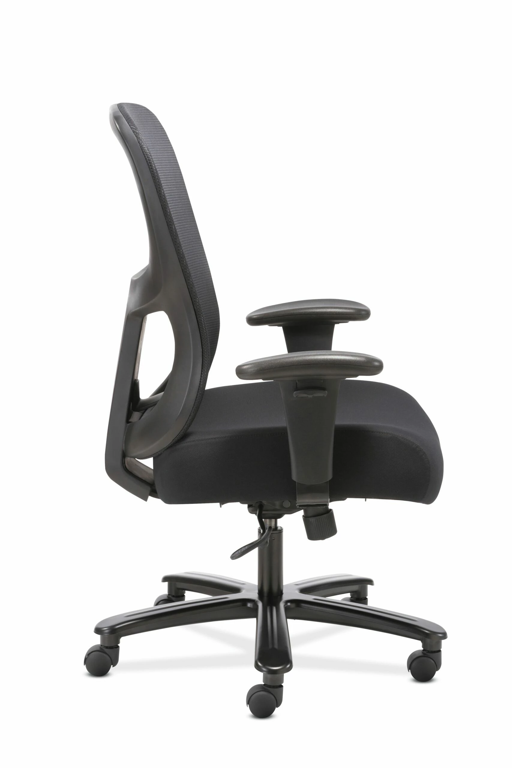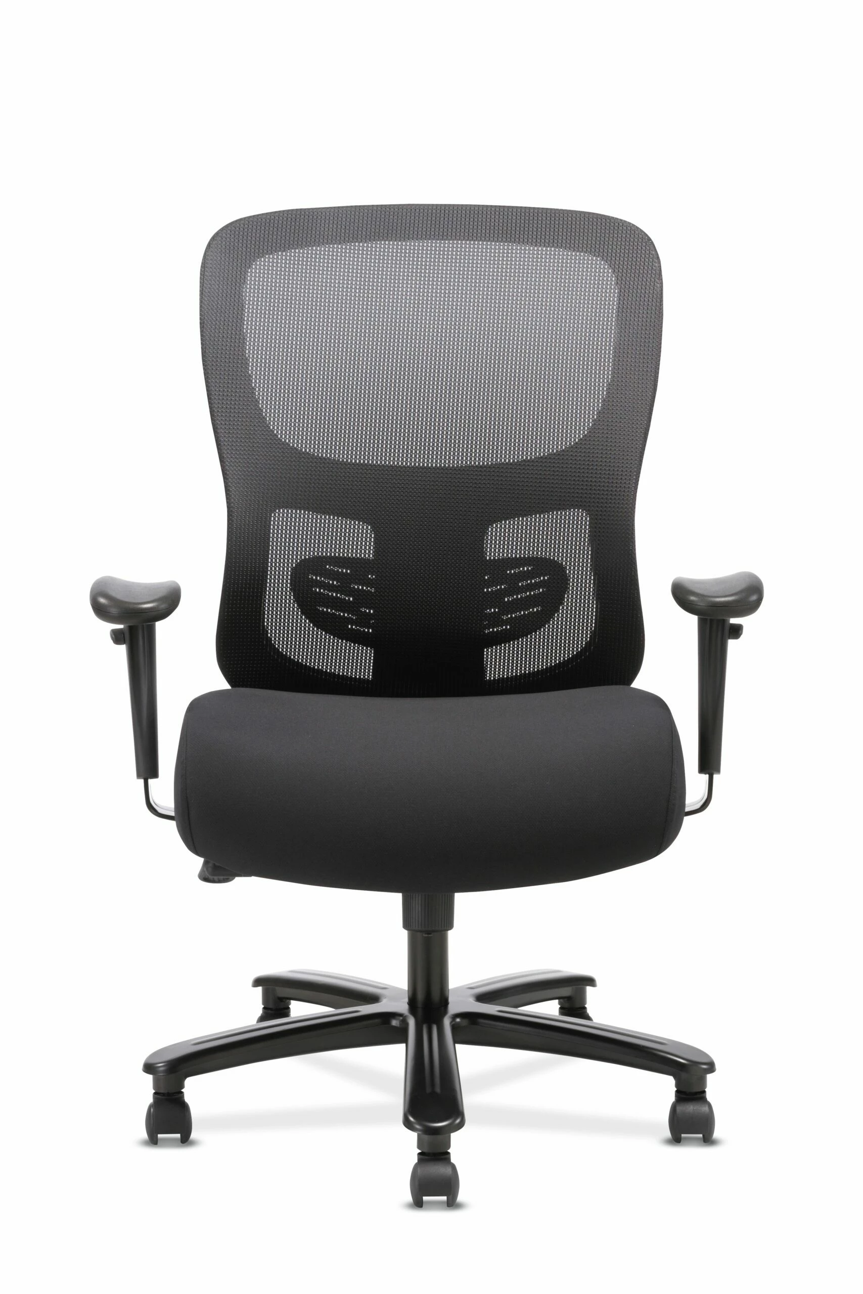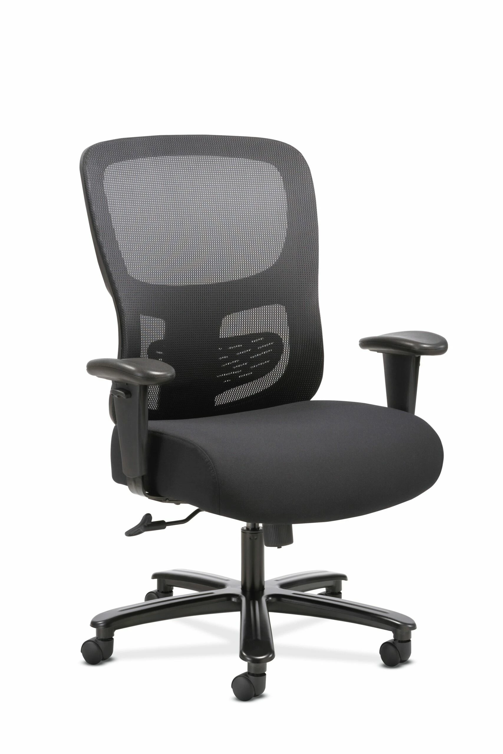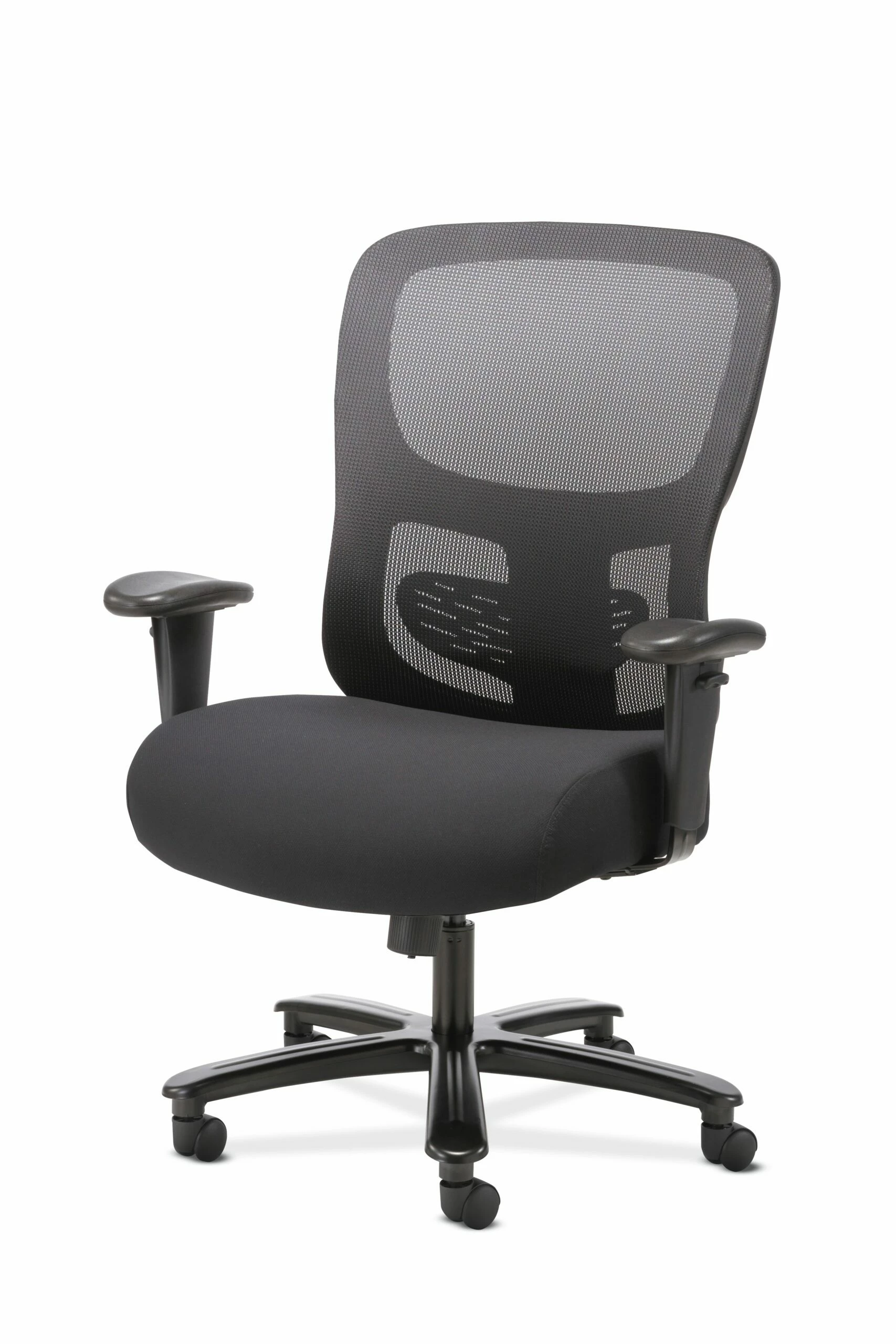 The Sadie seating collection is where quality meets value. The 1-Forty-One big and tall task chair offers luxurious comfort and support to people up to 350 pounds. Customizable features on this chair include an adjustable lumbar support for the lower back, height-adjustable arms and a 360-swivel seat that quickly moves up and down to fit a variety of users. The black mesh back creates breathable support that stretches to reduce pressure points, while the cushioned Black fabric seat offers plush comfort all day long. Whether used in a workstation or a home office, this chair provides the upscale style, ergonomic support and low price that makes it an attractive option for anyone seeking a little extra structural support. This chair meets or exceeds industry standards for safety and durability, and is backed by a limited 3-year warranty.
