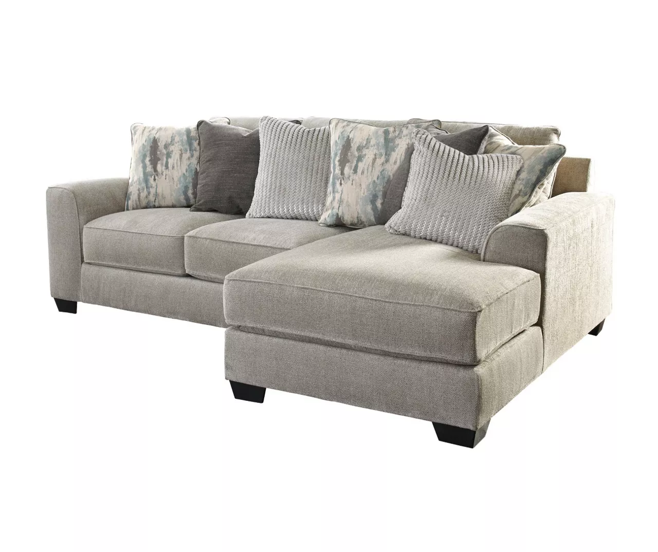 - Contemporary sectional with right-arm-facing corner chaise and left-arm-facing loveseat