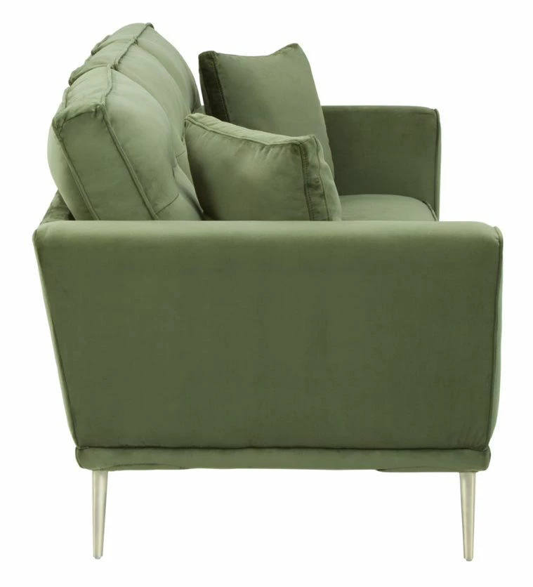 Get comfortable with a modern aesthetic when you add this sofa to your home or office. The clean, linear design in classic navy blue fits so well into any sophisticated space. With soft-to-the-touch polyester upholstery and a metal accent leg in a bold brass-tone finish, this piece elevates your décor to up-to-the-minute cool.