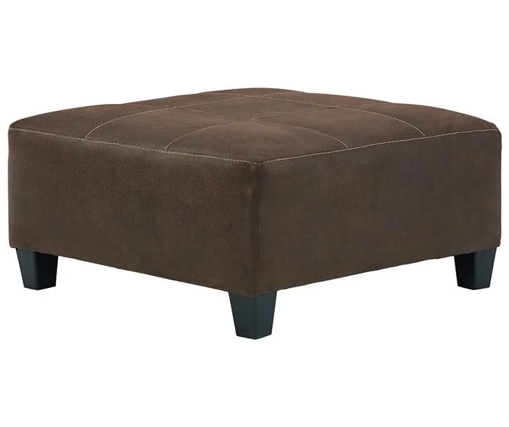 If you love the cool look of leather but long for the warm feel of fabric, you can take comfort in this oversized ottoman. Wrapped in a fabulous faux leather with a weathered hue and hint of pebbly texture to resemble the real deal, this decidedly modern ottoman proves less is more. Elements include jumbo stitching for fashion-forward flair.