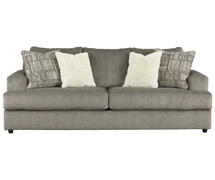 Flaunting a trendsetting silhouette, this sofa puts the contemporary in your contemporary home. Its “three over two” profile eliminates the center seat cushion, giving you elongated plushness and deep seating. Microfiber fabric satisfies your need for a piece that feels as good as it looks. Accented with soft jacquard chenille throw pillows for a splash of geometric pattern and color contrast.