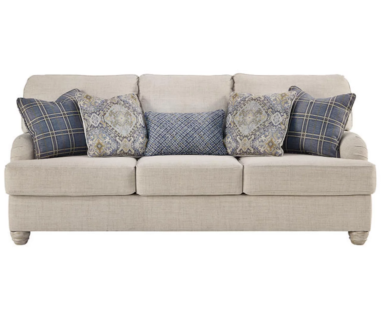 Don’t be shy—take a seat on this farmhouse-style sofa. Dressed in a modern and relaxed linen-weave upholstery, it’s a luxurious complement to rustic accents with its light and airy palette and elegantly turned feet. What a picture-perfect finish to any shabby chic or countryside living room.