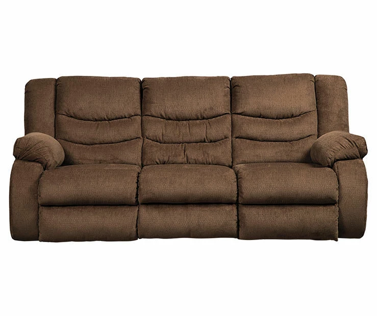 The Tulen reclining sofa puts the win in winning. Its waterfall back design and doubly plump pillow top arms team up with soft chenille fabric to go for the goal. Ample seating room makes the comfort possibilities endless. Sit back and relax. You won’t go wrong with this reclining sofa.