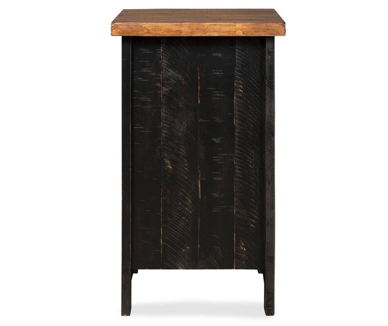 To those with an eye for the best in rustic farmhouse living, this two-tone chairside end table doubles up on charm. Designer touches include plank-effect styling, distress marks and a wire mesh door front for added character.
